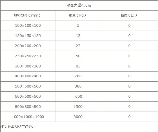 大理石方箱精度:精度分為00級、0級、1級三個等級。大理石方箱在使用中即使遭重物磕碰,至多掉幾粒石碴而已。大理石方箱優于優質鑄鐵和鋼材制作的精密測量基準零件,可以獲得高而穩定的精度。